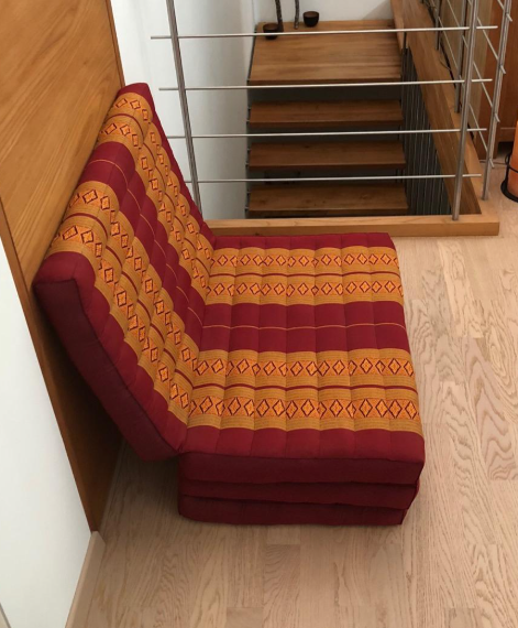 Der Hersteller präsentiert die Namasdee Klappmatratze als eine ideale „Natur-und Wohlfühllösung“ für zuhause oder unterwegs. Gefüllt mit 100 % unbehandeltem Kapok aus dem Kapokbaum wird hier bewusst ein pflanzlicher Füllstoff verwendet, kombiniert mit einem strapazierfähigen Baumwollbezug. Sie ist groß ausgelegt – 200 × 110 cm – und bietet mit einer Höhe von 8 cm (laut Angaben) ausreichend Liegekomfort für Gäste, Yoga oder den Garten. Dank der Falt- bzw. Klapp-Eigenschaft lässt sie sich flexibel einsetzen – als gemütliche Liegewiese, Gästebett oder Sitzmöbel. Bei der Verarbeitung wird auf Handarbeit, nachhaltige Produktion und Qualität geachtet, sodass ein hochwertiges Naturprodukt entstehen soll.