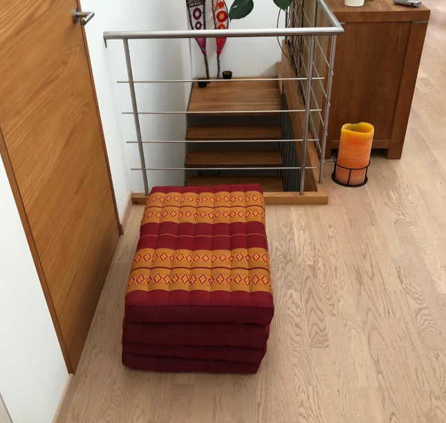 Im Alltag zeigte sich, dass die Klappmatratze beim Auspacken sofort einsatzbereit war – nach wenigen Minuten Auslüften konnte sie verwendet werden. Beim ersten Probeliegen war die Unterlage merklich fester als viele herkömmliche Matratzen – was von manchen Nutzern als sehr angenehm empfunden wurde, von anderen aber als ungewohnt. Für eine Übernachtung von Gästen funktionierte sie gut: ausreichend Fläche, solide Liegefläche, und keine unangenehmen Geräusche beim Umdrehen. Als Sitz- oder Liegefläche tagsüber (z. B. im Wohnzimmer oder auf dem Balkon) ist die Matratze durch ihre Breite und das Muster durchaus dekorativ und bequem. Beim Umklappen und Verstauen war die Größe zwar beachtlich, aber durch das Klappsystem gut handhabbar – allerdings sollte man eine helfende Hand haben, da das Gewicht mit rund 10–13 kg nicht leicht ist. Auf dem Boden liegend war besonders das Gefühl hervorzuheben, dass keine Bodenkälte durchkam – wie vom Hersteller versprochen bei Kapokfüllung. Im Outdoor-Test auf dem Balkon war die Matte robust gegen Kälte vom Boden und bequem für eine entspannte Stunde Liegen. Beim Schlafen über Nacht war nach einer gewissen Eingewöhnungszeit ein guter Schlaf möglich – Rückenschläfer fühlten sich gut unterstützt, Seiten­schläfer gaben an, etwas mehr Auflage zu wünschen. Die Faltmatratze zeigte in der Verarbeitung gute Qualität: Der Bezug war sauber vernäht, keine losen Fäden, keine spürbaren Unebenheiten. In der Nutzung über mehrere Wochen war kein starker Geruch festzustellen, was ein Vorteil gegenüber vielen neuen Produkten war. Allerdings zeigte sich nach intensiver Nutzung an den Nähten eine leichte Dehnung – hier könnte die Langzeitbelastung eine Rolle spielen. Für Yoga und Meditation war die Matte ausreichend stabil, auch wenn sie nicht so weich ist wie typische Yogamatten – aber gerade die Festigkeit war hier von Vorteil. Beim Transport im Auto oder Van war das Zusammenfalten hilfreich, jedoch muss man beachten, dass die Fläche beim Ausbreiten wieder Zeit zum Glätten benötigt. Das Muster und die Farben machten die Atmosphäre gemütlich – das Urlaubs- bzw. Farbmuster wirkte durchaus willkommen im Wohnraum. Die Reinigung war unkompliziert: Absaugen oder Auslüften reichte, der Bezug ließ sich gut pflegen. Die Vielseitigkeit als Liege, Gästebett, Sitzmöbel wurde im Alltag bestätigt, wenn auch nicht bei täglichem Dauereinsatz wie eine vollwertige Matratze im Boxspringbett. Eine wichtige Erkenntnis war: Wer eher eine weiche, tiefe Matratze gewöhnt ist, sollte sich auf eine festere Unterlage einstellen. Die Lagerung im geklappten Zustand war platzsparender als eine durchgehende Matratze – aber dennoch nicht so kompakt wie eine Auflage oder Luftmatratze.