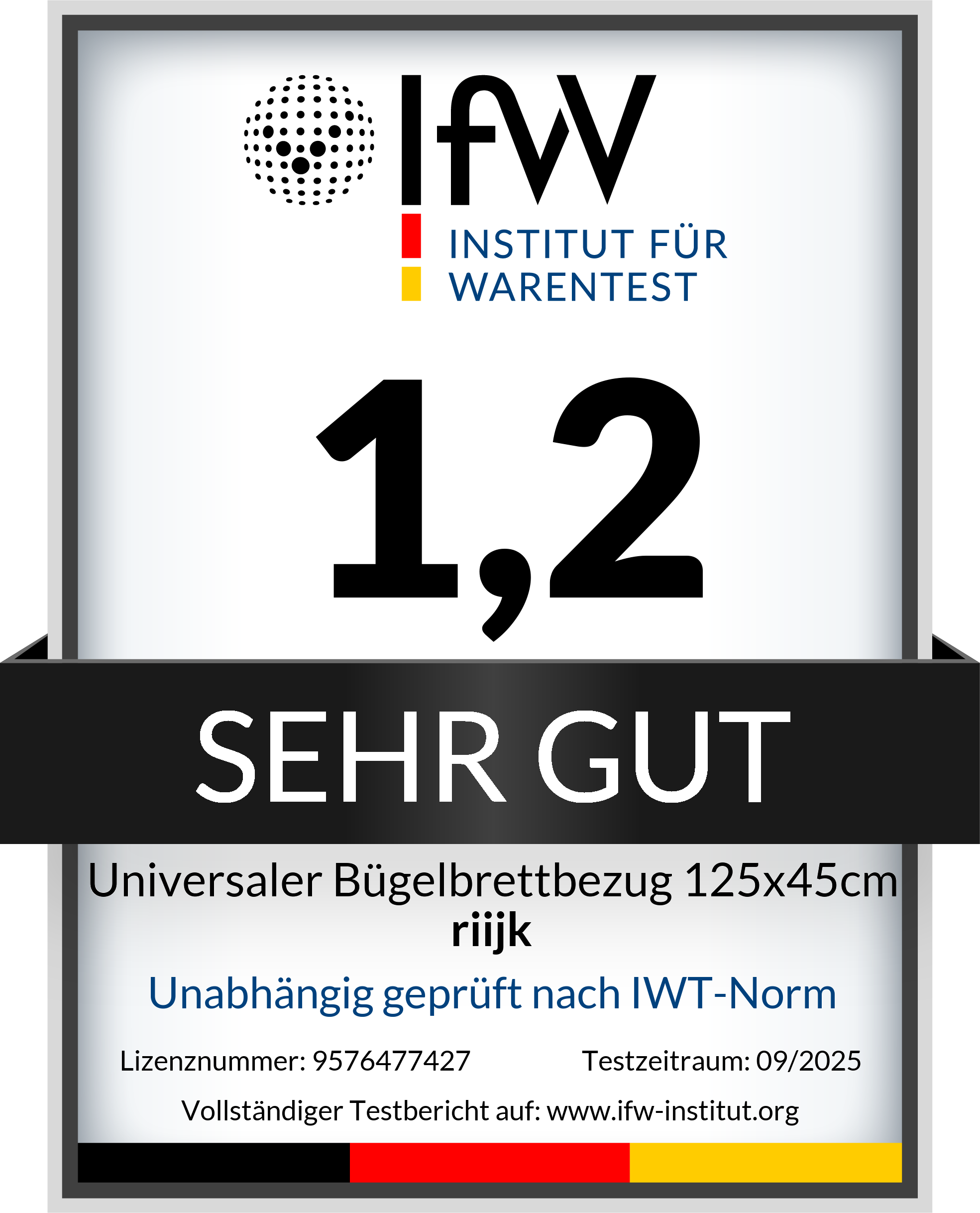 Der riijk Bügelbrettbezug sorgt für eine gleichmäßige Druckverteilung beim Bügeln und unterstützt durch seine spezielle Polsterung ein glattes Ergebnis von beiden Seiten. Das mehrschichtige Funktionsgewebe reflektiert die Hitze und ermöglicht auch bei niedrigen Temperaturen überzeugende Resultate. Durch seine dampfdurchlässige Konstruktion ist der Bezug ideal für Dampfbügeleisen geeignet. Die Befestigung erfolgt über ein rundum eingearbeitetes Gummiband, das eine einfache Montage erlaubt. Zusätzliche Spannclips an der Unterseite sorgen für sicheren Halt ohne Verrutschen. Der Bezug ist passend für gängige Bügelbretter mit einer Breite von 35 bis 40 cm und einer Länge von 115 bis 120 cm. Gefertigt wird er aus schadstoffgeprüften Materialien, wobei die Oberfläche aus 100 Prozent natürlicher Baumwolle besteht. Der Bezug ist pflegeleicht, waschbar und hitzestabil, wodurch eine lange Lebensdauer gewährleistet ist. Seine Materialstruktur minimiert die Bildung von Kondenswasser und schützt empfindliche Textilien beim Bügeln. Gleichzeitig verbessert der Stoff die Gleiteigenschaften des Bügeleisens, sodass sich Kleidungsstücke leichter bearbeiten lassen. Auch das gleichmäßige Trocknen von feuchten Textilien wird durch den Bezug unterstützt. Dank des durchlässigen Stoffaufbaus verteilt sich der Dampf optimal und sorgt für ein gleichmäßiges Ergebnis. Der Bezug ist auf den dauerhaften Einsatz im Haushalt ausgelegt und lässt sich bei Bedarf problemlos austauschen. Die schadstofffreie Verarbeitung sorgt für Sicherheit auch bei hohen Temperaturen. Insgesamt stellt der riijk Bügelbrettbezug eine zuverlässige und praktische Ergänzung dar, die das Bügeln effizienter und angenehmer macht.